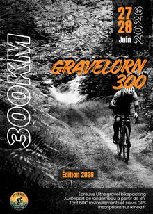 Gravelorn 300 deuxième éditionDu 27 au 28 juin 2026 à LANDERNEAU (29) GravelLa GRAVELORN 300 Les 27 et 28 juin 2026, la Gravelorn t’embarque pour une aventure vélo ! À toi de choisir ton style : full gaz si t’as des jambes… ou un peu plus chill en mode bikepacking sur deux jours. Petit déj au départ, ravitaillements au 100ᵉ km et au 200ᵉ... | Inscription |