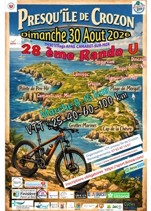 RANDO U CAMARET SUR MER TOUR DE LA PRESQU'ILE DE CROZON 2026Le 30 août 2026 à CAMARET-SUR-MER (29) VTT - RandonnéeRandos VTT 4 circuits : 25-40-65 km et Raid VTT 100 km empruntant les magnifiques chemins en bord de mer de la Presqu'île de Crozon Marche 2 distances : 9 et 15 km 28 ème édition Rando U , tarif inscription incluant la redevance Espaces... | Inscription | |