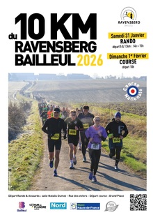 LES 10 KM DU RAVENSBERGLe 1er février 2026 à BAILLEUL (59) Course sur route10 km du Ravensberg "Le circuit se fait sur une seule boucle très vallonnée, à travers la campagne des monts des Flandres. Le parcours est très touristique, passant devant les houblonnières et les brasseries artisanales ". Dépassez vos limites, ensemble, sur le circuit du... | Inscription |