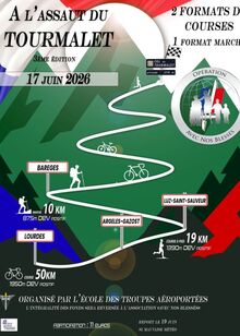 A l'assaut du Tourmalet 3ème éditionLe 17 juin 2026 à PAU (64) Cyclisme sur route - Course à pied - RandonnéeÉvènement sportif organisé par l'école des troupes aéroportées de PAU au profit des blessés de l’armée de Terre. Rejoignez-nous pour l'ascension du col du Tourmalet le mercredi 17 juin 2026, une épreuve sportive ouverte à tous... | Inscription | |