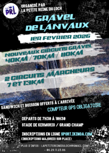 la 4 ème Edition de la GRAVEL DE LANVAUX, à travers les Landes de Lanvaux Trois distances gravel de 110km, 70 Km & 40Km dans la campagne de Grand-Champ dans le Morbihan. Nouveautés 2026 : 2 parcours de marche de 7 et 13km Randonnées non... | Inscription | |