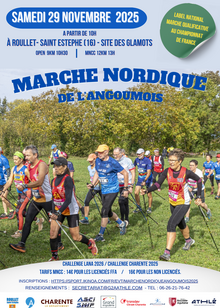 Marche Nordique de l'Angoumois 2025Le 29 novembre 2025 à ROULLET-SAINT-ESTÈPHE (16) Marche Nordique8ème Édition - 10H30 Marche Nordique Open Circuit de 9,2km en 3 boucles. Inscrite au challenge de la Marche Nordique de la Charente 2025 organisé par le Comité Départemental d'Athlétisme et aux Défis Sportifs du Conseil Départemental de la Charente. Épreuve ouverte aux... | Inscription | |
