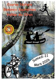Course Nature Bommes Sauternes Vallée du CironLe 21 mars 2026 à BOMMES (33) Raid natureEn solo ou en duo 1,4 km de trail 28,8 km de VTT 6,5 km de trail 5,2 km de canoë Comme chaque année, la Course Nature Bommes Sauternes Vallée du Ciron est de retour ! C'est un... | Inscription | |