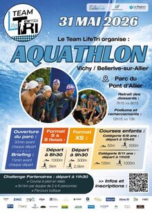 AQUATHLON VICHY / BELLERIVELe 31 mai 2026 à BELLERIVE SUR ALLIER (03) Dimanche 31 mai 2026 Parc du Pont d’Allier – Vichy / Bellerive Un événement sportif accessible à tous L’Aquathlon Vichy / Bellerive est un rendez-vous incontournable mêlant natation et course à pied, dans un cadre naturel privilégié. Que vous soyez... | Inscription | |