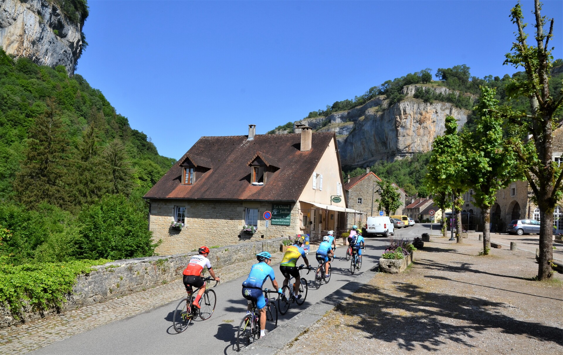 Entre 250 et 700 m d’altitude, le parcours offre un bel aperçu des richesses naturelles et du patrimoine jurassien : les reculées et leurs falaises calcaires, les lacs et les petites rivières, les calmes villages et les bosses de la « Petite montagne » ; et puis des églises, des châteaux discrets, …et 2 ravitos.