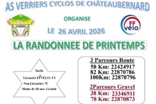 Le 26/04/2026 de 07h30 à 13h30- 78.0 km 🞄 Dénivelé positif : 470 m