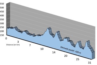 > 30 km sportif (D+ 620 m) : adapté aux personnes ayant déjà pratiqué le VTT mais peu entraînées, ou à celles et ceux souhaitant mieux découvrir le VTT.