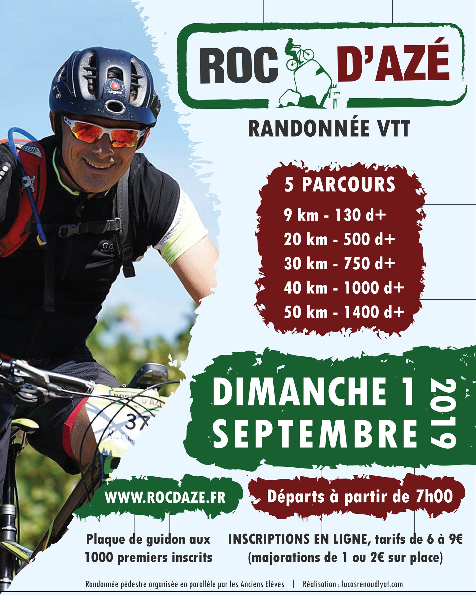Organisé par les Dériv’Chaîne, le Roc d’Azé est une randonnée conviviale et chaleureuse proposée par des amoureux du VTT qui vous font découvrir les meilleurs chemins/singles de la région.