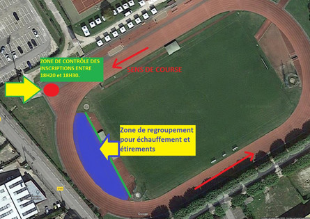 Une fois le contrôle effectué, vous commencez directement à vous échauffer en courant sur la piste (dans le sens inverse des aiguilles d’une montre).